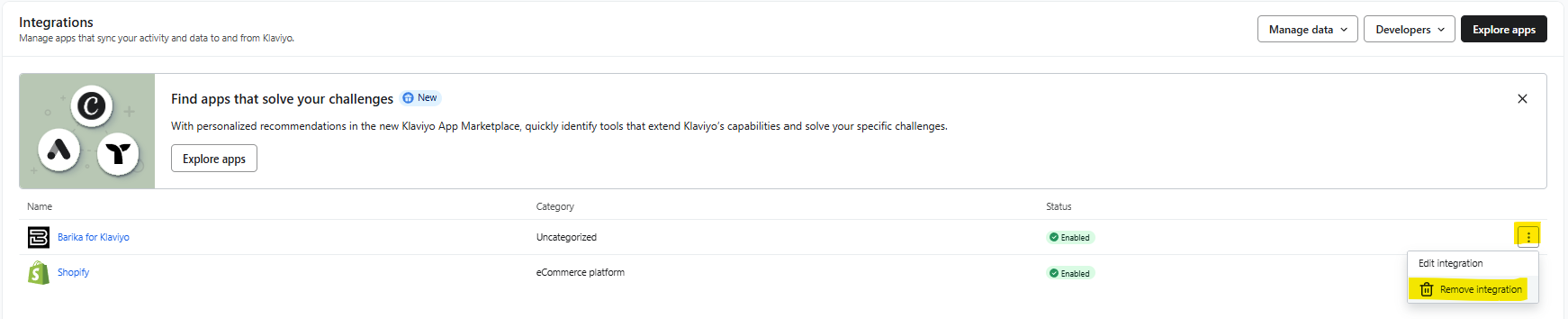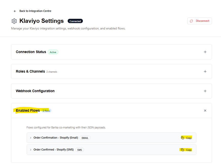 - Klaviyo connection is removed from Barika Integration Centre