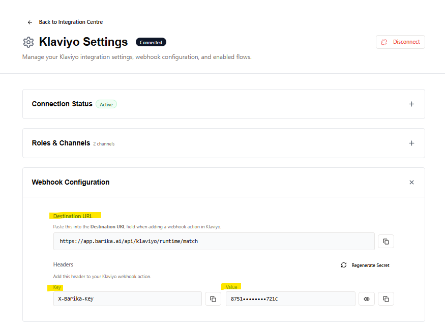 | Settings URL | https://app.barika.ai/portal/integrations/klaviyo |