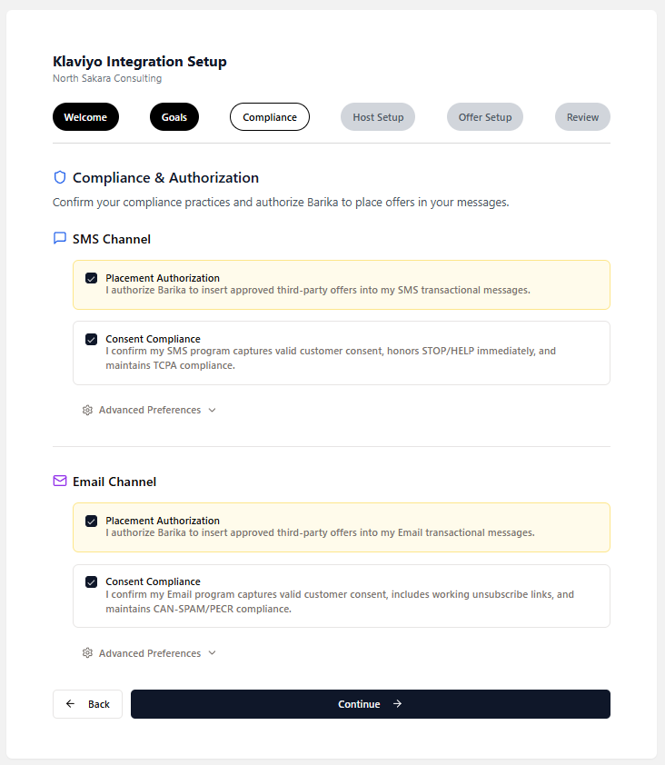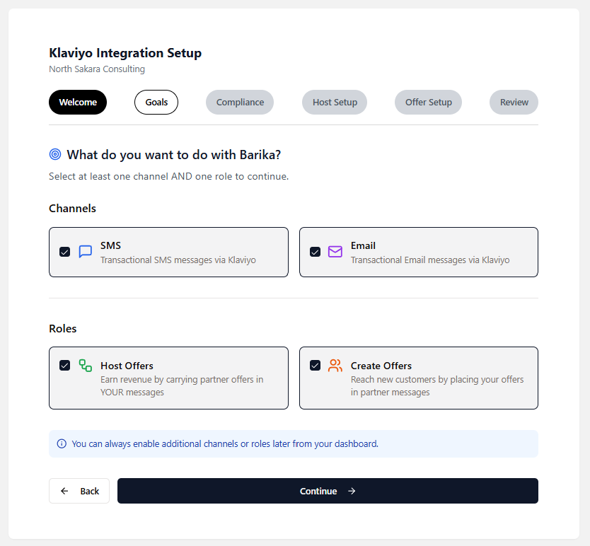 Use Case 2: Complete the Barika + Klaviyo Setup Wizard