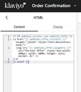 - In Klaviyo: Paste into the Body field