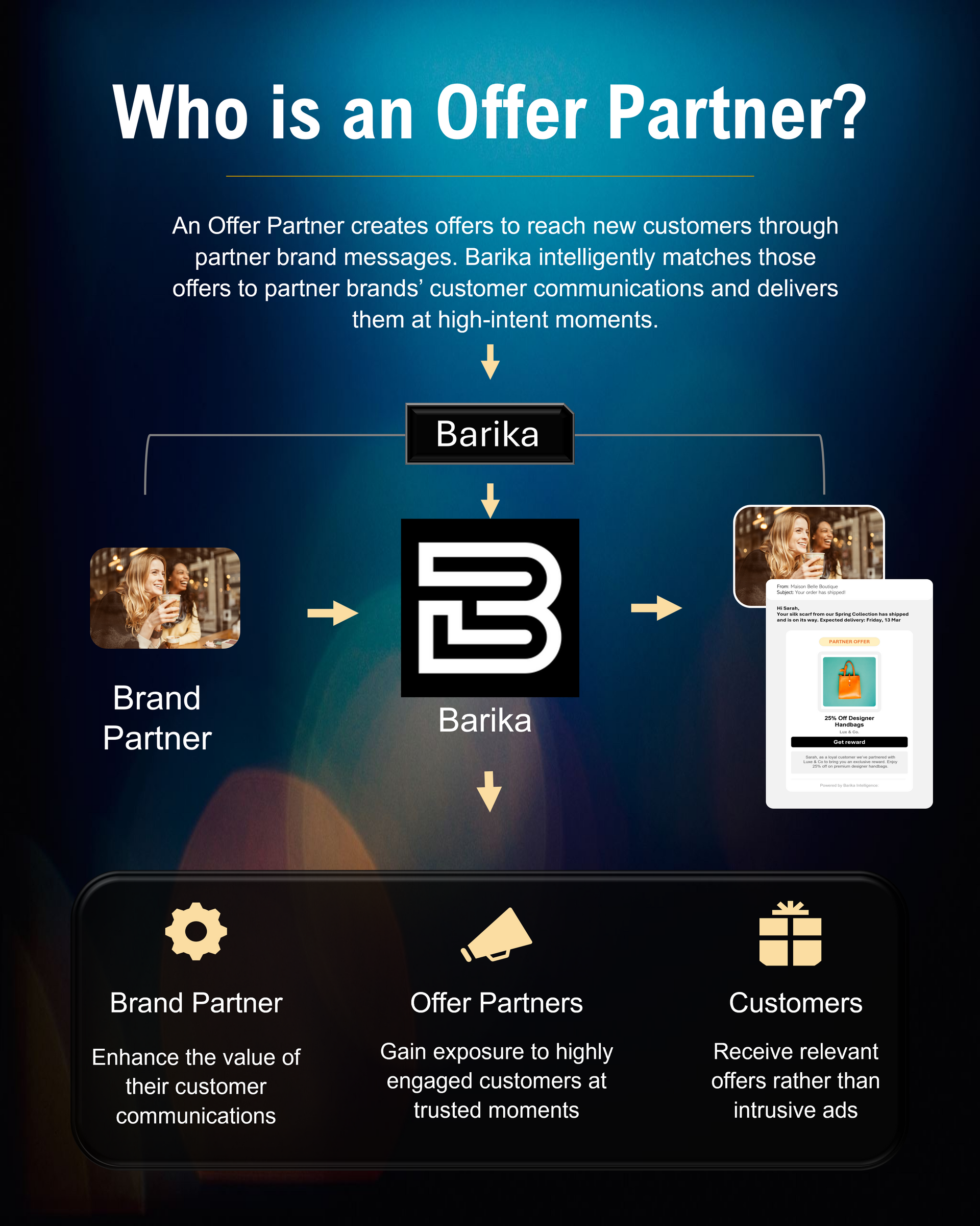 Within the Barika platform, these offers are intelligently matched to relevant partner brands and delivered to customers during high-intent moments in the purchase journey.
