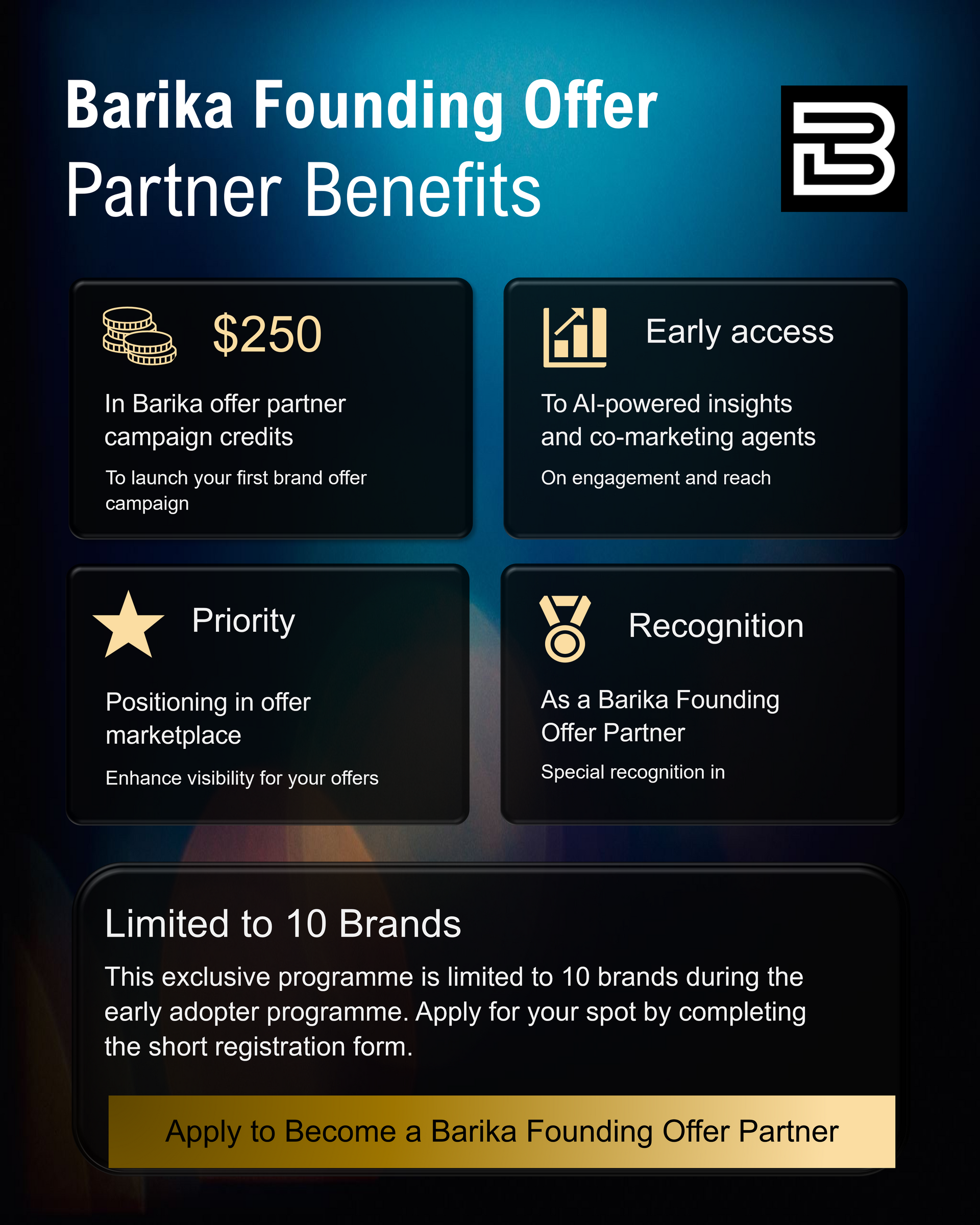 The Founding Offer Partner Programme is an early access initiative for brands that want to reach new customers through Barika’s AI-powered co-marketing platform.